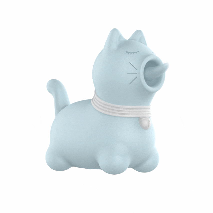 El diseño exterior es dulce, moderno y funcional, con una estética inspirada en la ternura y el juego. Su color azul suave (Pantone similar a 292U) le da un toque de frescura y tranquilidad, sin perder el encanto de un juguete sofisticado y lleno de intención. Es compacto, ergonómico y fácil de sostener, perfecto para uso individual o como parte del juego en pareja.